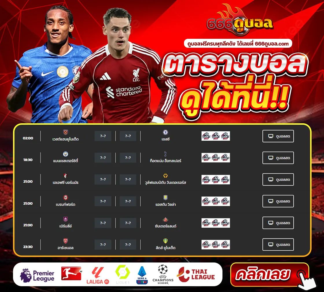 ตารางบอล อัปเดตครบทุกลีก พร้อม ตารางบอลวันนี้ และ ตารางบอลล่าสุด ให้แฟนบอลไม่พลาด โปรแกรมบอลวันนี้ ครบทุกคู่ ครบทุกเวลา เหมาะสำหรับคอบอลที่ต้องการติดตามผลการแข่งขันแบบเรียลไทม์ ไม่ว่าจะเป็นลีกเล็ก ลีกใหญ่ หรือทัวร์นาเมนต์ดัง ที่นี่มีการอัปเดต ตารางบอล อย่างละเอียดทุกวัน ให้คุณวางแผนเชียร์ทีมโปรดได้อย่างมั่นใจและแม่นยำที่สุด กับ 666ดูบอล.com